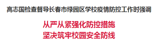 高志国高度重视学校疫情防控工作,先后来到长春市人力资源和社会保障局高级技术学校、吉林省长春现代管理学校和吉林俄语专修学院,听取学校疫情防控情况汇报,详细了解核酸检测、校园静默管理、周边环境管控情况和师生心理健康状况,勉励广大师生坚定必胜信心,规范做好个人防护,听从指挥、齐心协力、共克时艰,以坚定的意志挺过难关、战胜疫情。
